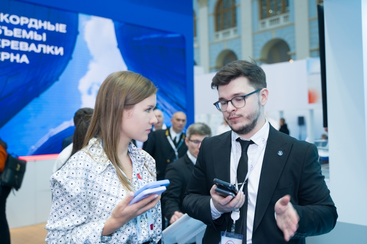 Пока на соседней площадке кипела жизнь, стенд «Совкомфлота» работал как буфер, отфильтровывая журналистов и перенаправляя с вопросами к руководителю пресс-службы
